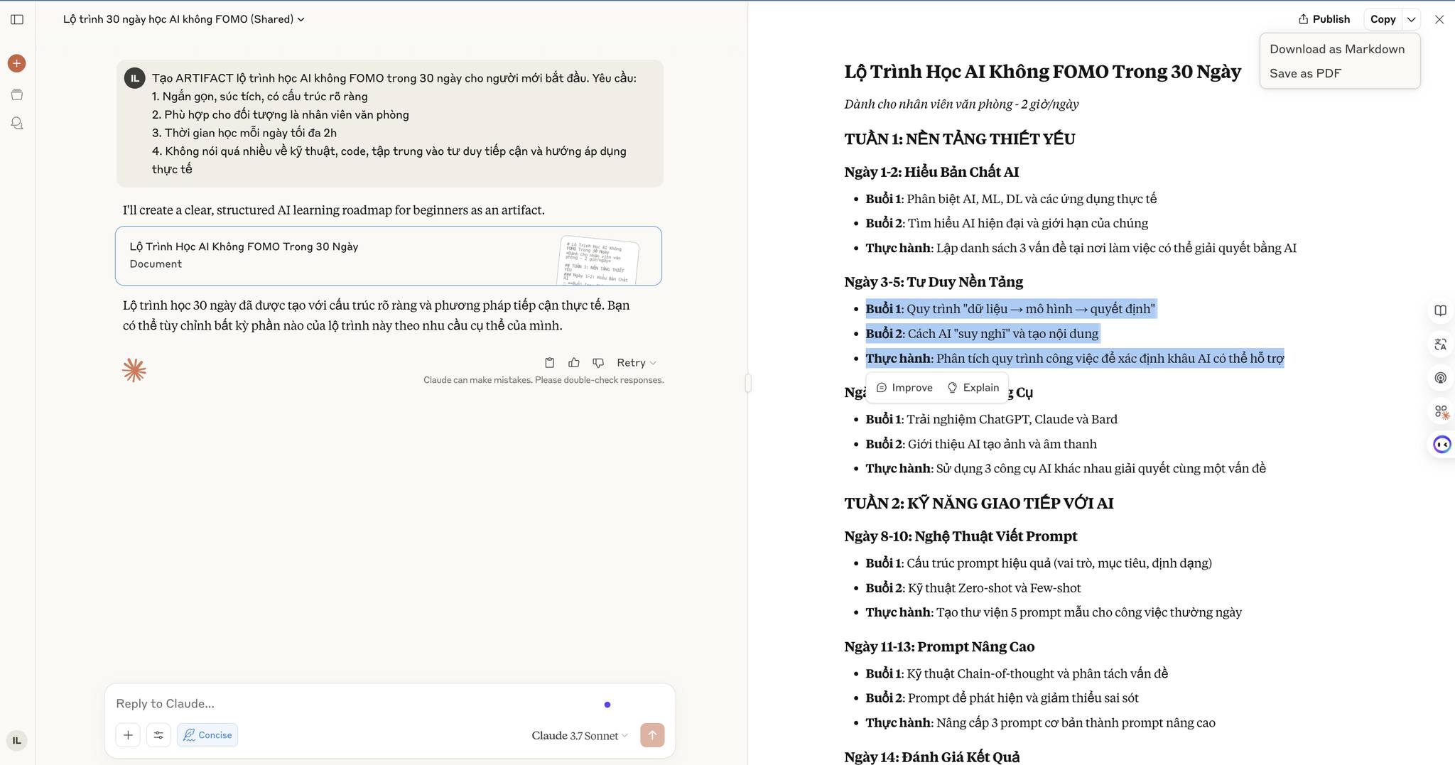 3. Dễ dàng lưu lại bằng file pdf. Đặc biệt, aritfact cho phép bạn tải file markdown, chuyên dùng để vẽ mindmap.