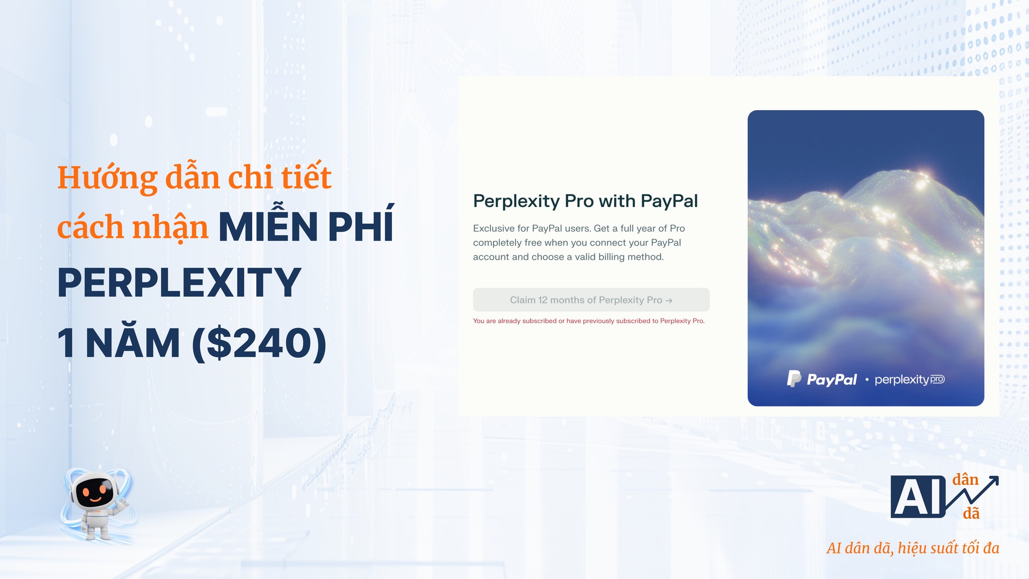 Rất đơn giản, bạn xem link dưới comment do Perplexity công bố, điền thông tin là sẽ nhận được.